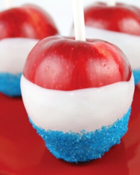 With thousands of shares and tens of thousands of page views, these Red, White, and Blue Dipped Apples are one of the most popular patriotic recipes on my site. I was the first to share this original viral treat that took Pinterest by storm.