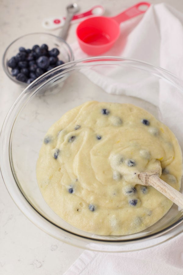 • Can I use frozen blueberries? Yes, but don’t thaw them first — add straight from the freezer and fold gently.