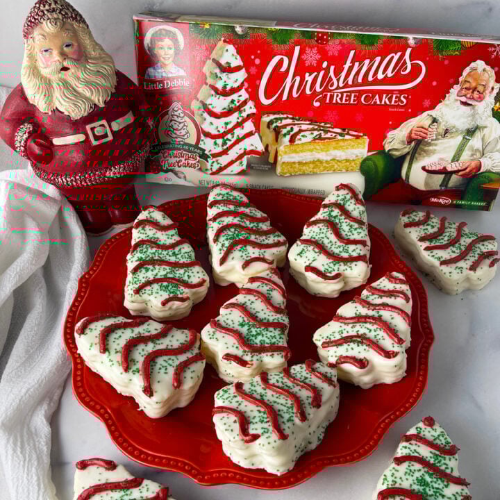 - To dip, drop a cake bite in the chocolate (peanut butter side up). Use a fork to push the chocolate up and over the cake (make sure you don't touch the cake though, you don't want crumbs in your chocolate). Once it's covered in chocolate, lift the cake with the fork and tap off excess chocolate. Place on cookie sheet lined with parchment paper. Decorate with sprinkles, if desired. Once you've dipped (and decorated) all of the cakes, place them in the refrigerator for 30 minutes to 1 hour or until set.